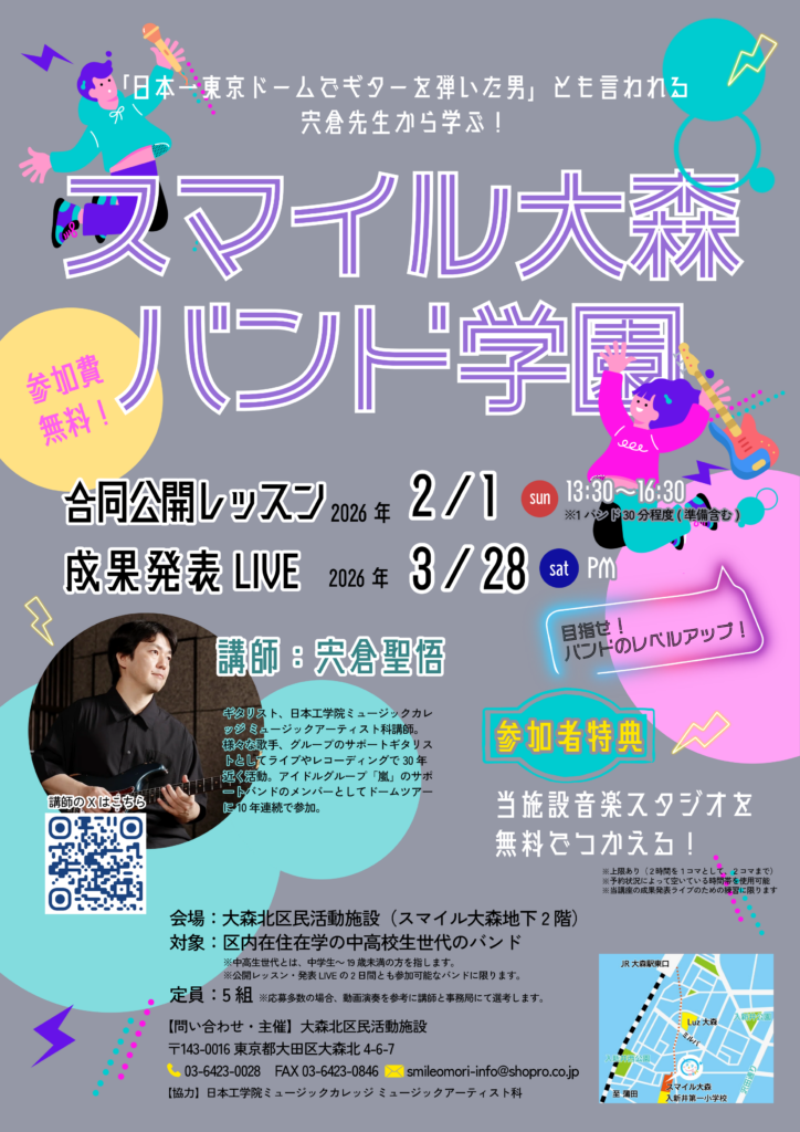 「日本一東京ドームでギターを弾いた男」とも言われる宍倉聖悟先生から、アドバイスをもらってレベルUP➡スマイル大森のステージで成果発表LIVE🎸🎶​
